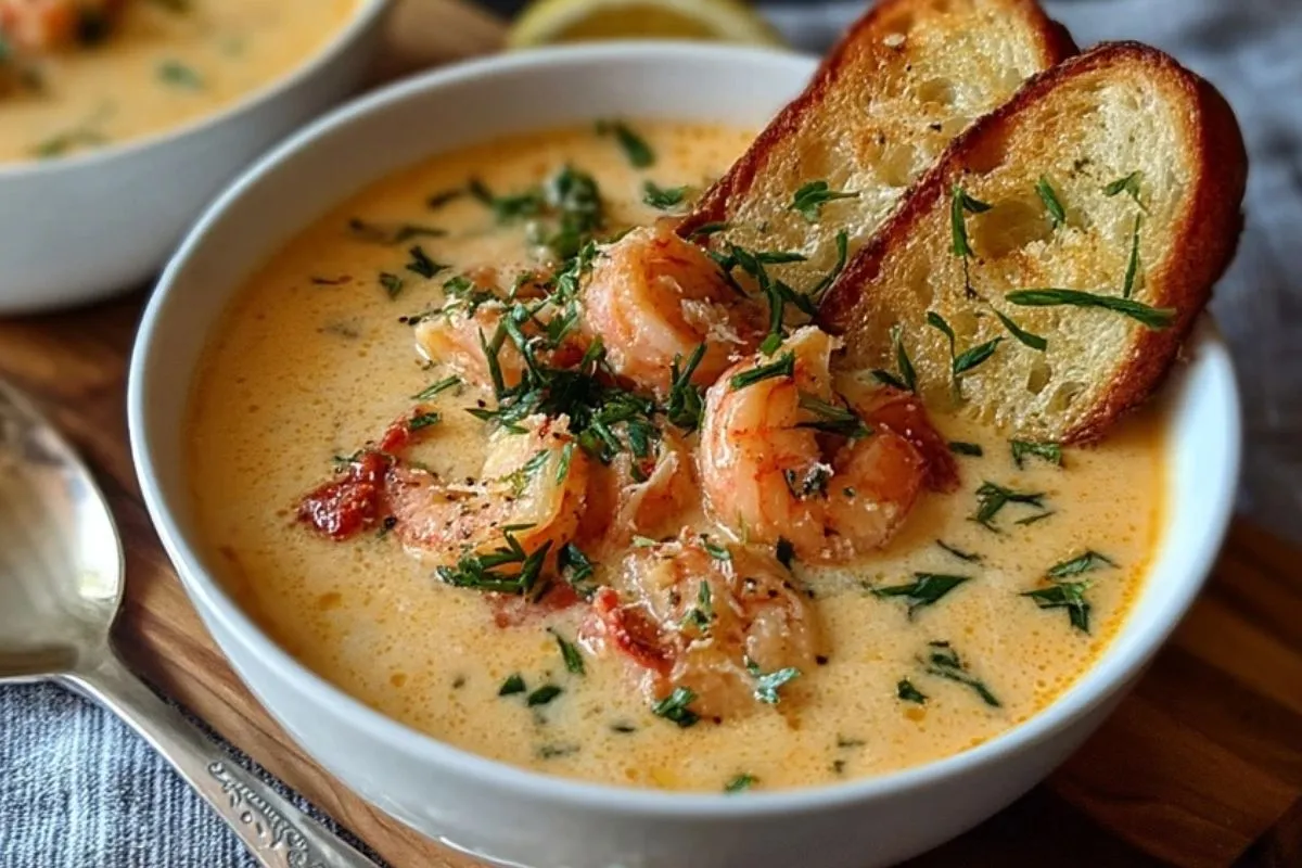 La bisque crémeuse de crabe et crevettes est un grand classique des tables élégantes, parfaite pour ouvrir un repas festif ou réchauffer une soirée d’hiver. Sa texture veloutée, relevée par la douceur des crustacés et une touche subtile d’aromates, offre un équilibre raffiné entre richesse et finesse. Inspirée des traditions culinaires françaises, cette bisque met en valeur la saveur délicate du crabe et la gourmandise des crevettes, sublimées par une base aromatique mijotée lentement. Servie bien chaude avec quelques tranches de pain grillé, elle transforme un simple dîner en moment d’exception.