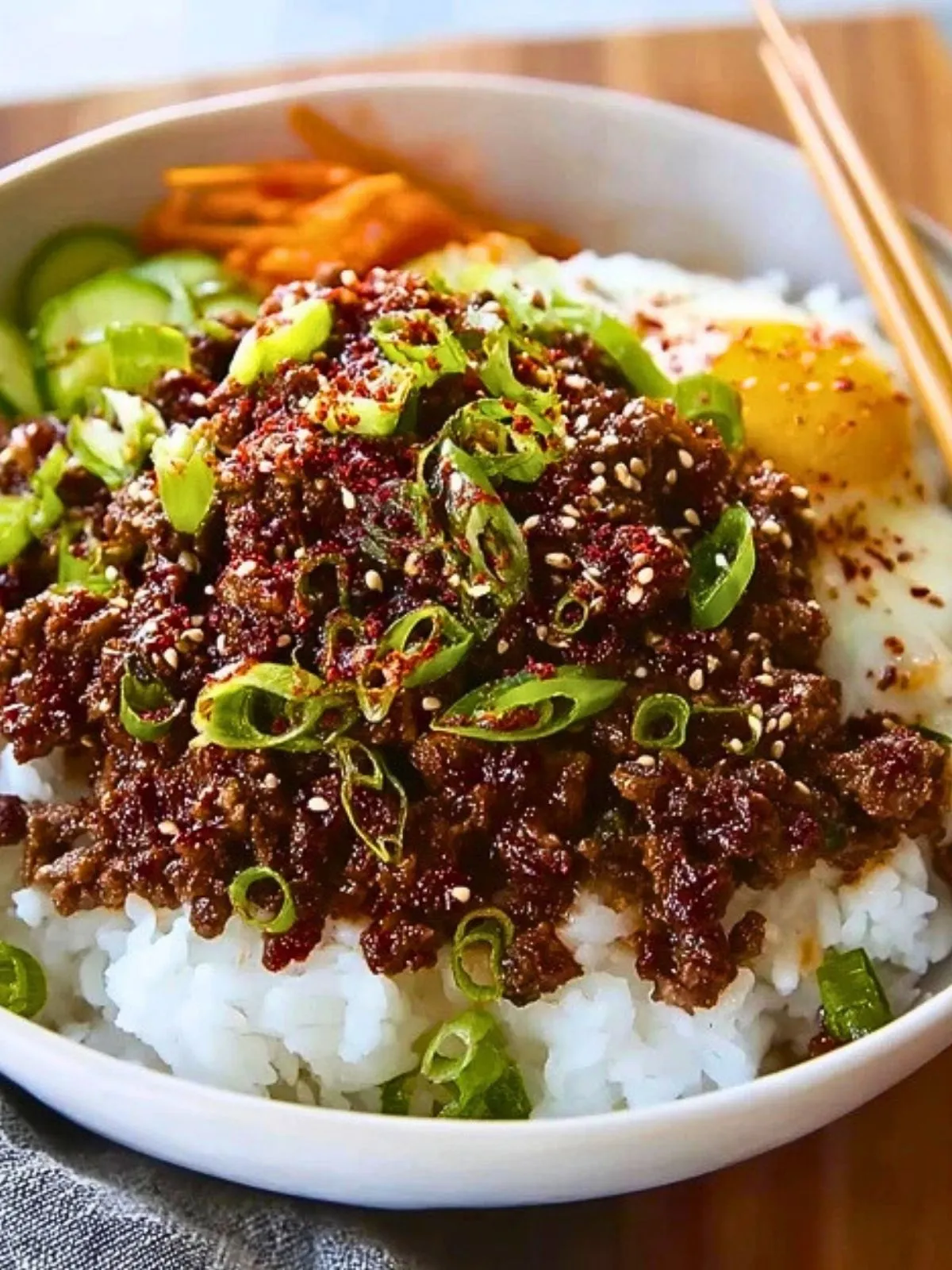 Keywords: bol de bœuf coréen, bœuf haché, riz, dîner facile, bol asiatique
