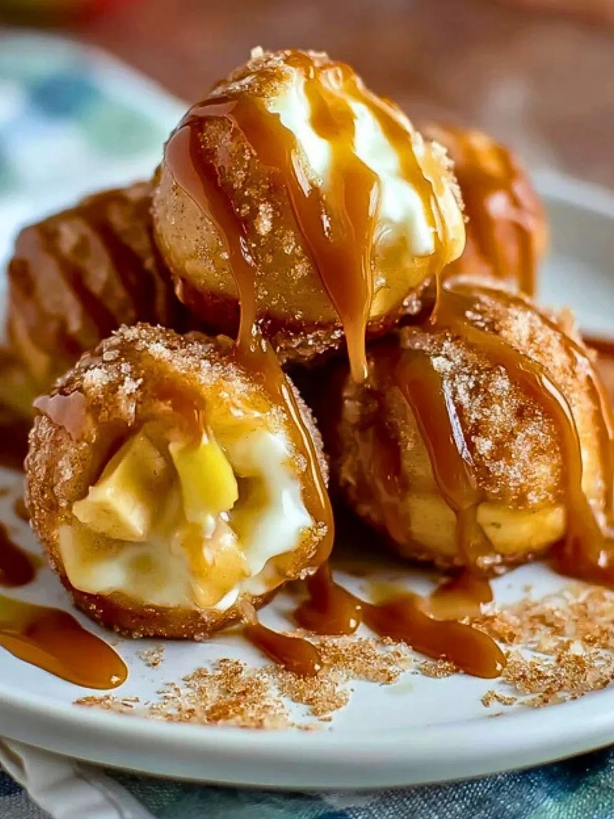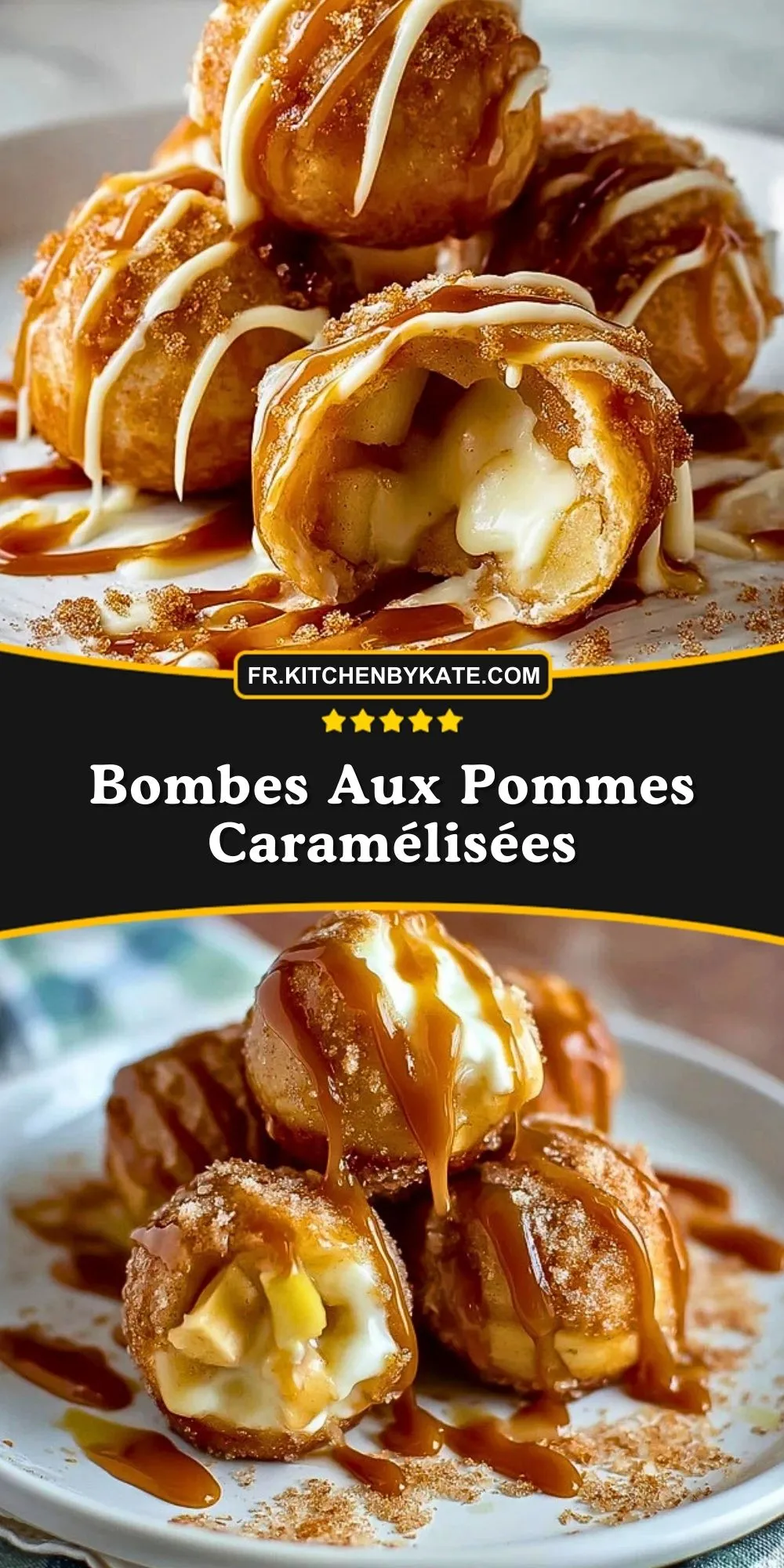 Les bombes aux pommes caramélisées se distinguent par leur double texture : un extérieur croustillant, roulé dans le sucre et la cannelle, et un intérieur fondant et généreux. L’association de la pomme acidulée, du caramel soyeux et du cœur crémeux transforme chaque bouchée en explosion de saveurs. De plus, elles se préparent rapidement avec des ingrédients simples, accessibles à tous, sans besoin d’un moule spécifique.