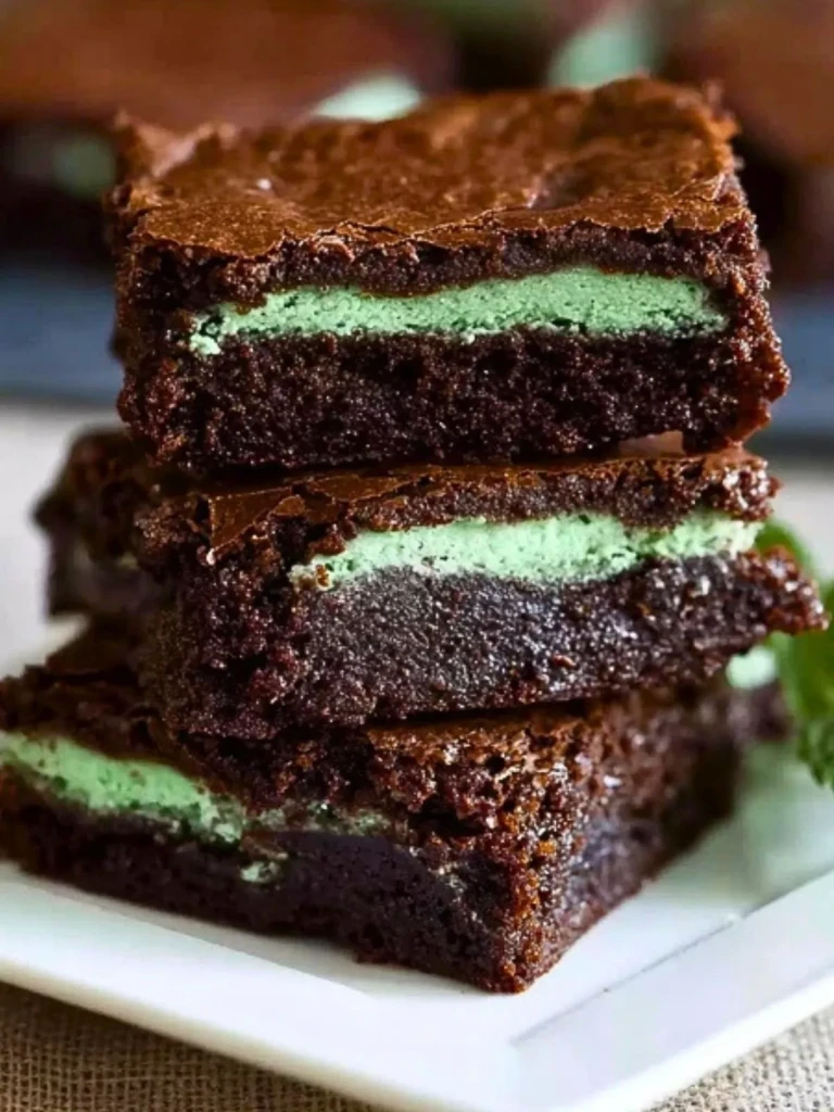 Ces brownies se dégustent idéalement à température ambiante ou légèrement frais pour sublimer le contraste entre chocolat et menthe. Servez-les en petites parts pour accompagner un café gourmand ou lors d’un goûter festif. Ils se conservent très bien dans une boîte hermétique, au frais, pendant 3 à 4 jours.