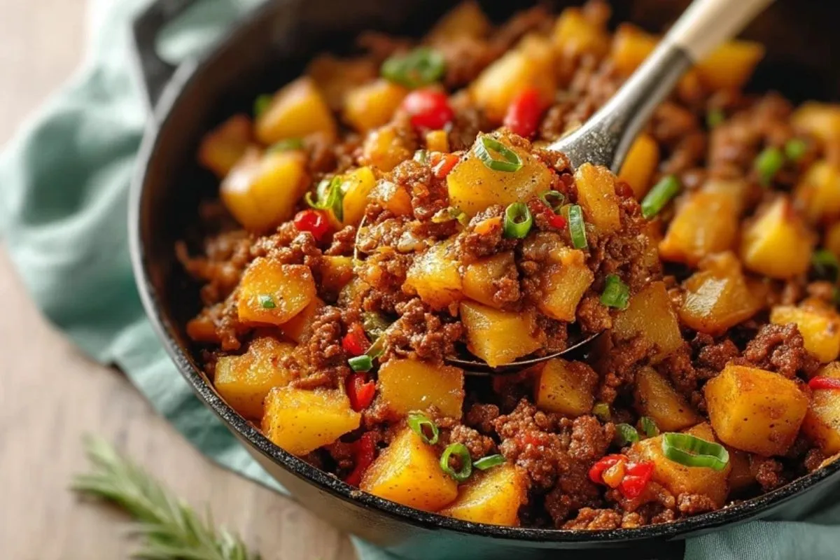 Ajoutez le bœuf haché dans la poêle et faites-le cuire en l’émiettant avec une spatule. Lorsqu’il est bien saisi, incorporez le cumin, le paprika, le piment, le sel et le poivre. Cette étape permet de développer une garniture très parfumée qui formera le cœur du gratin.