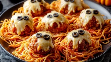 Spaghetti Fantômes Avec Boulettes De Viande Monstrueuses Au Fromage