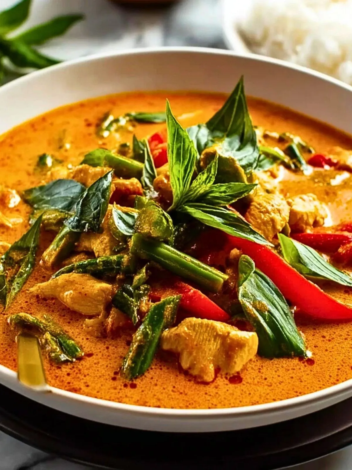 Plongez dans un tourbillon de saveurs exotiques avec ce Curry Panang Thaïlandais Inoubliable, un plat emblématique qui fait honneur à la cuisine thaïlandaise. Sa sauce crémeuse et parfumée, relevée par la pâte de curry Panang, la douceur du lait de coco et la fraîcheur des herbes, enveloppe à merveille les morceaux tendres de poulet ou de crevettes, ainsi que des légumes colorés. Ce plat est la promesse d’un voyage sensoriel, réconfortant et intensément savoureux, parfait pour ravir toute la tablée.