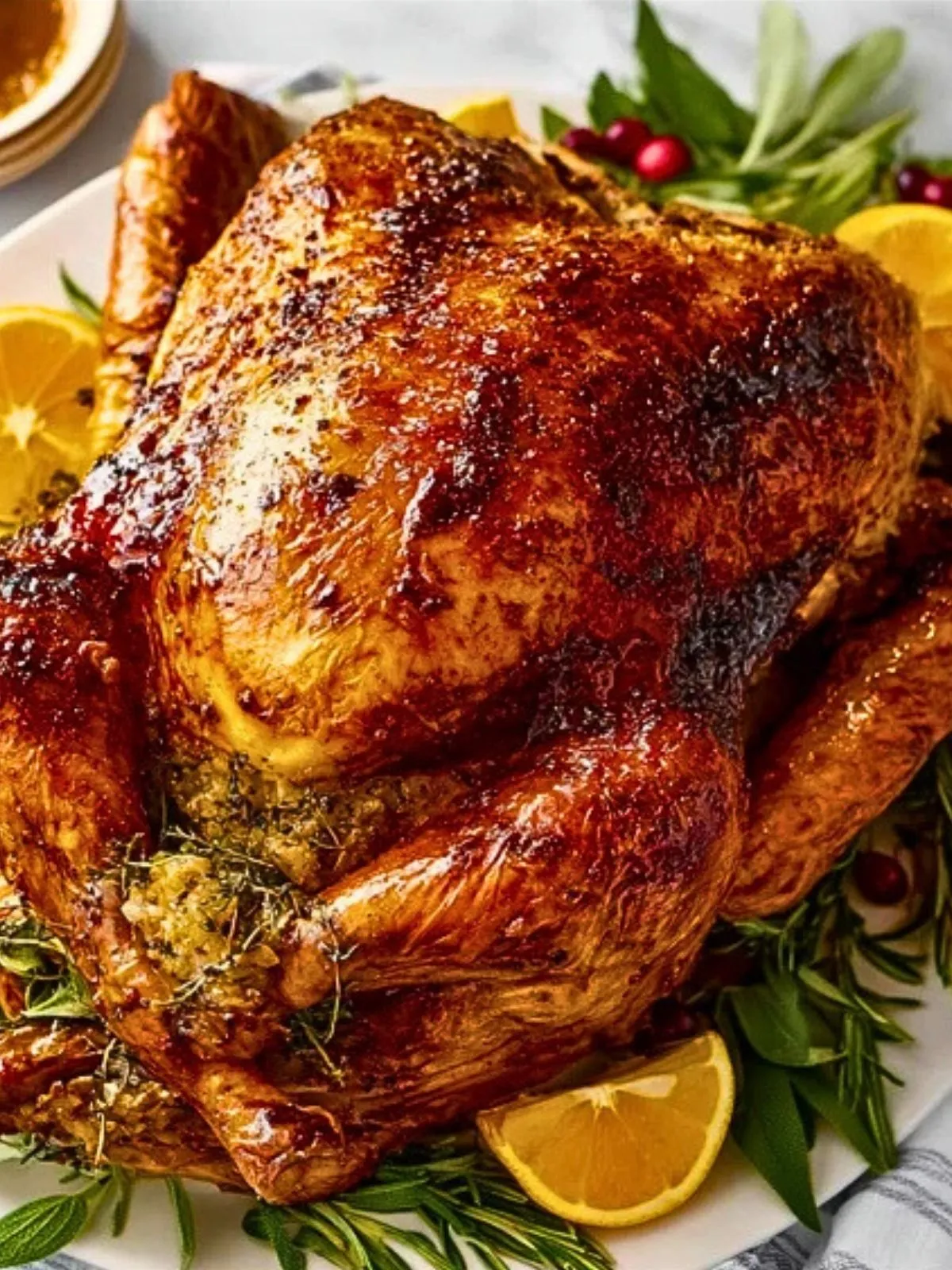 Et racontez-moi en commentaires comment elle a été accueillie chez vous : avez-vous ajouté d’autres herbes, farci la dinde ou servi une sauce particulière ? Avez-vous essayé avec une petite dinde ou un gros poulet pour un dîner plus intimiste ?