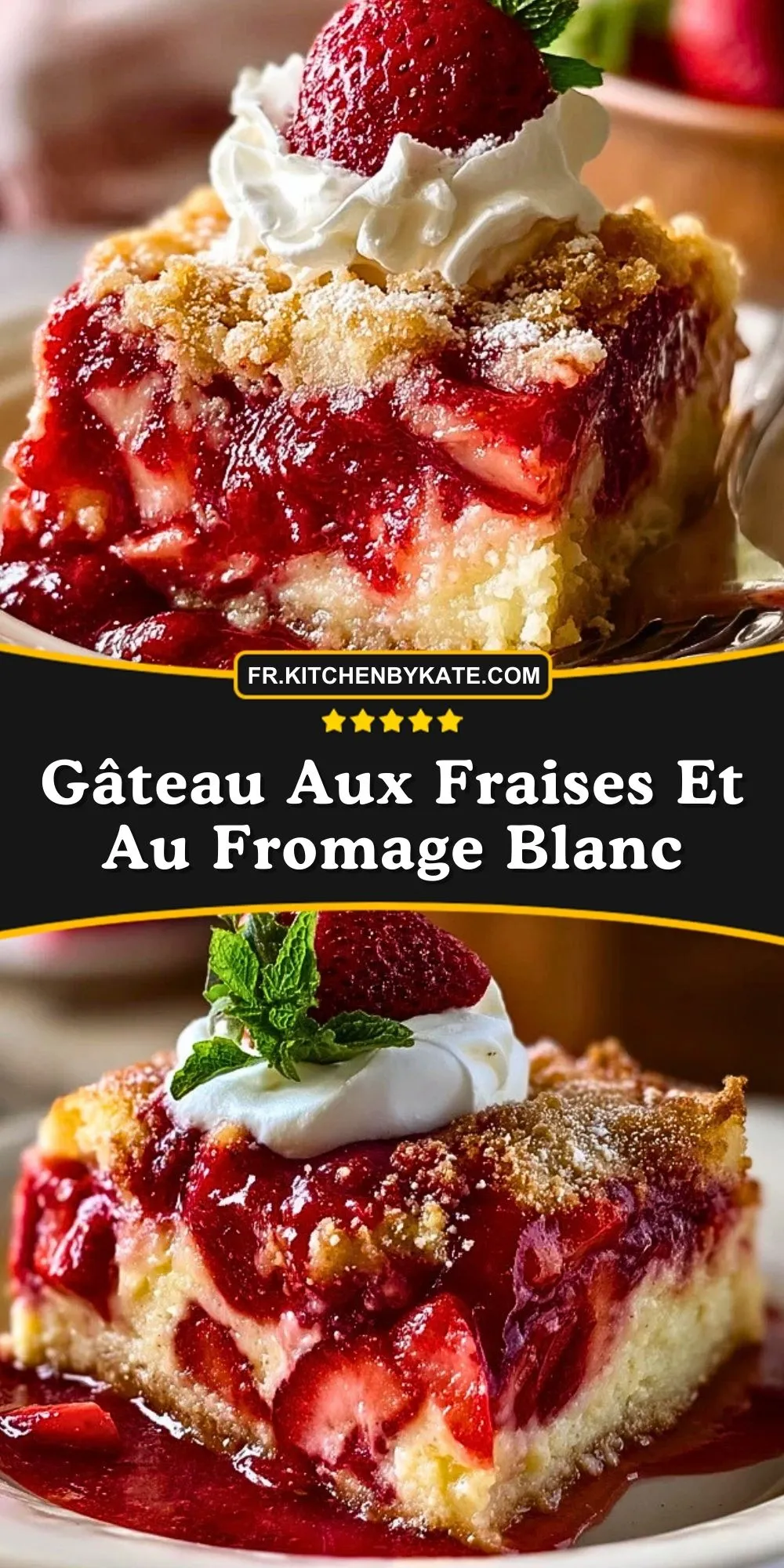 Épinglez ce gâteau aux fraises et au fromage blanc sur votre tableau Pinterest desserts pour le retrouver facilement au moment d’organiser un goûter, un brunch ou un dessert de saison.