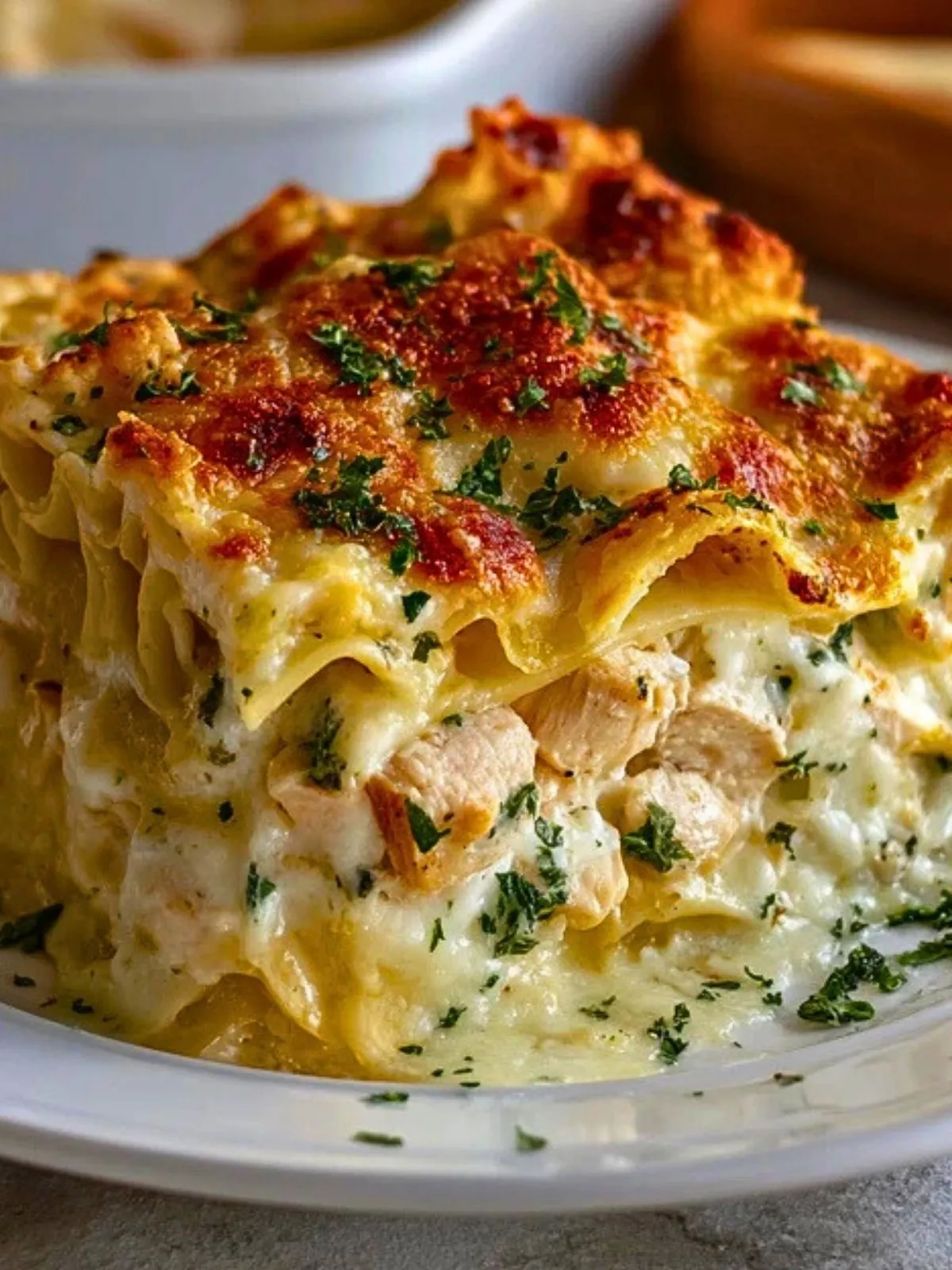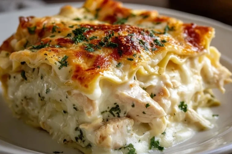 La lasagne Alfredo au poulet est un plat généreux composé de couches de pâtes fondantes, de poulet tendre et d’une sauce crémeuse au parmesan. Riche et réconfortante, elle est parfaite pour un repas familial ou un dîner convivial.