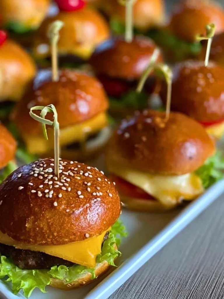 Ces mini cheeseburgers sont parfaits pour un apéritif dînatoire, un anniversaire ou un buffet gourmand. Moelleux, savoureux et ludiques, ils font l’unanimité auprès des petits comme des grands ! Personnalisables à souhait, ils peuvent être préparés à l’avance et réchauffés juste avant de servir.