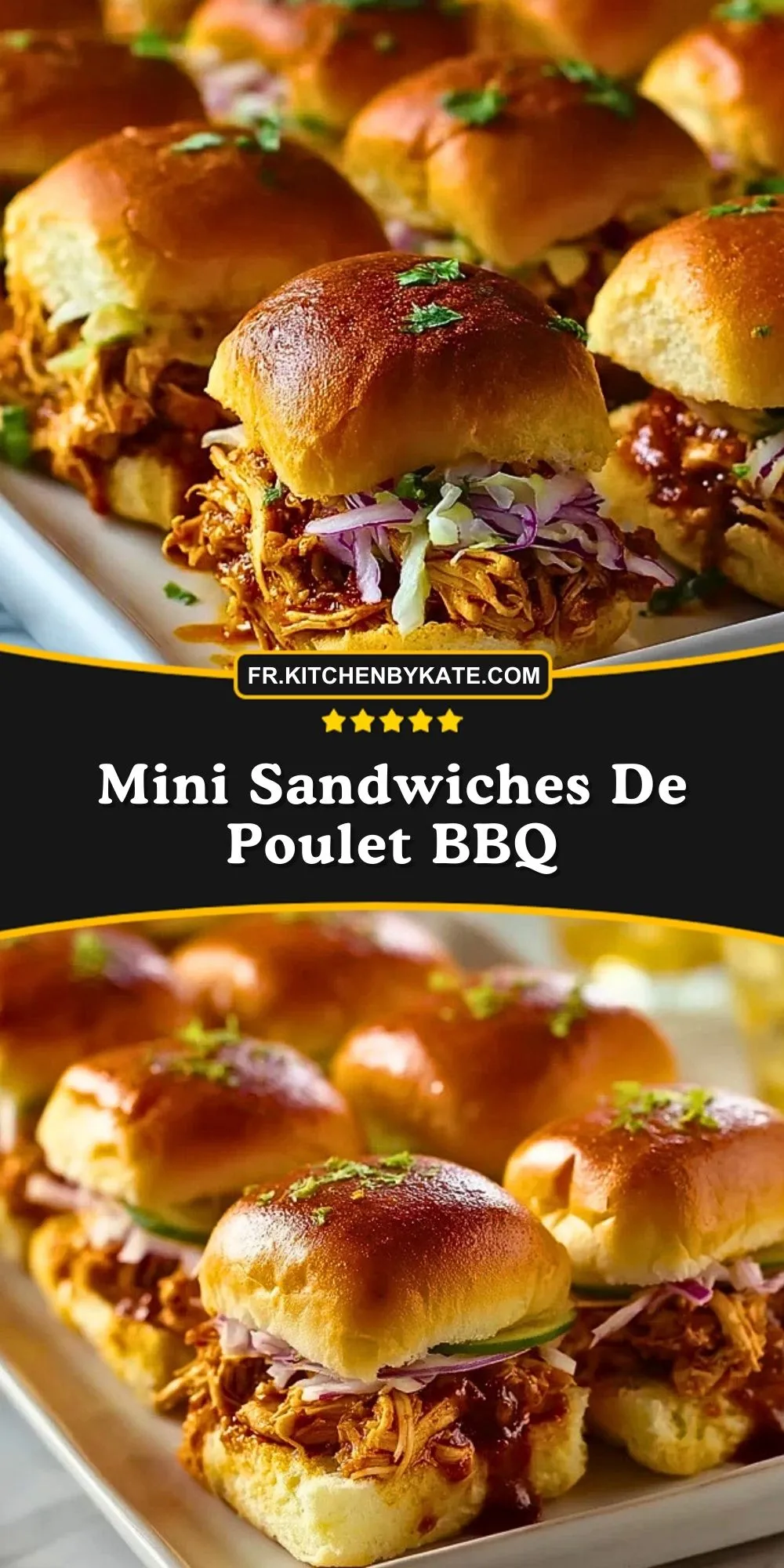 Les mini sandwiches de poulet BBQ sont parfaits pour les repas conviviaux, les buffets ou les soirees entre amis. Leur garniture de poulet effiloche enrobe de sauce barbecue, associee a une salade croquante, offre un contraste irresistible entre fondant et fraicheur.