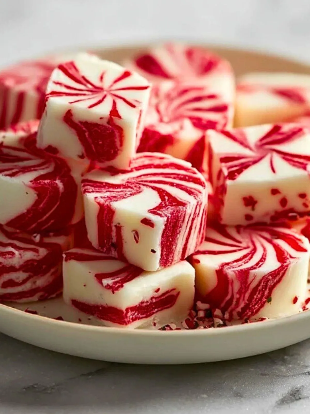 Ces Mints à la Menthe Poivrée Maison sont de petits carrés fondants au chocolat blanc, délicatement parfumés à la menthe poivrée et joliment marbrés de rouge comme des cannes de Noël. Sans cuisson et prêts avec quelques ingrédients seulement, ils sont parfaits pour garnir vos plateaux de fêtes, offrir en cadeaux gourmands ou simplement accompagner un café bien chaud.