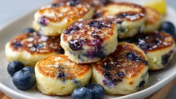 Bouchées De Pancakes Au Fromage Cottage, Myrtilles Et Citron
