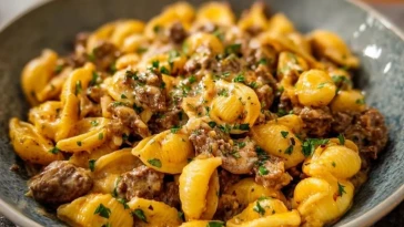 Pâtes crémeuses au bœuf