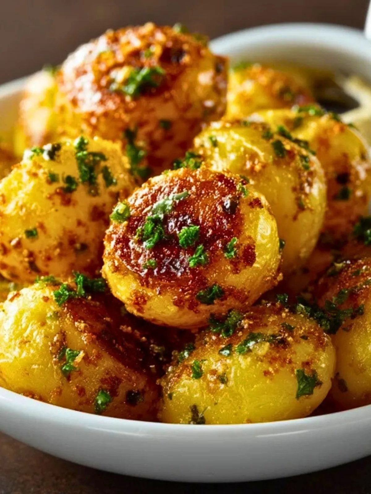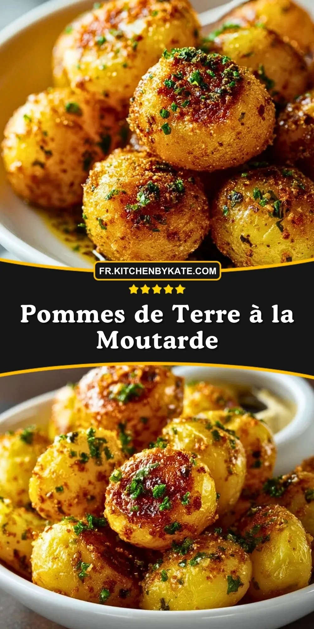 Ces pommes de terre à la moutarde sont dorées et croustillantes à l’extérieur, fondantes à l’intérieur, et enrobées d’une sauce au beurre, à l’ail et aux deux moutardes qui parfume délicieusement chaque bouchée.