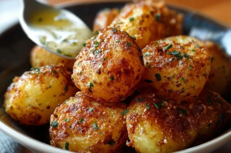 Cette version se prépare avec des pommes de terre grenaille, juste cuites puis rissolées, puis nappées d’un beurre parfumé à la moutarde, à l’ail et aux herbes fraîches. Le résultat : de petites bouchées crousti-fondantes, brillantes de sauce, qui se dévorent aussi bien chaudes en accompagnement que tièdes à l’apéritif.