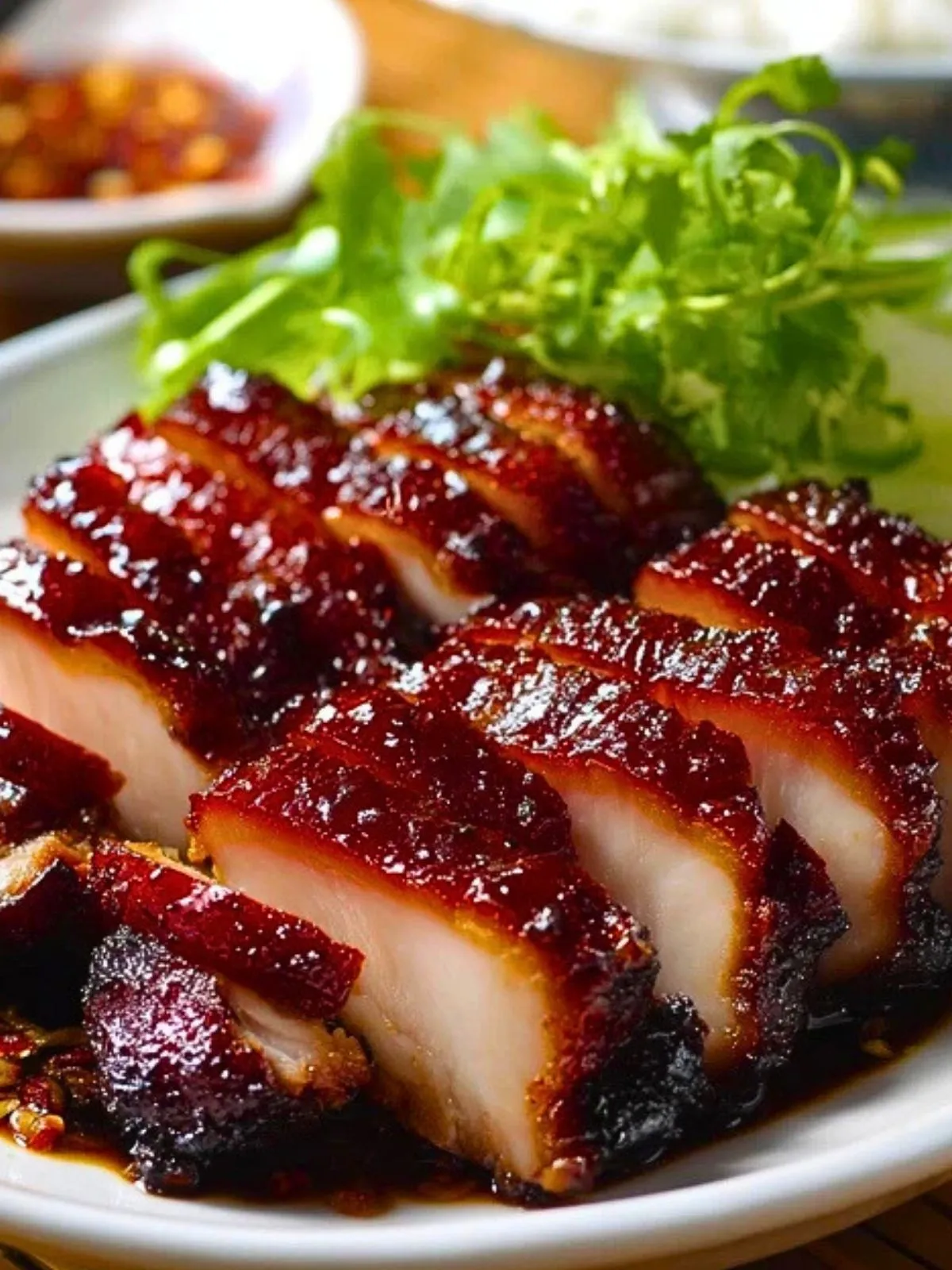 Le poulet Char Siu se savoure chaud, fraîchement tranché, avec du riz blanc, des légumes sautés ou dans un sandwich asiatique. Conservez les restes au réfrigérateur 2 à 3 jours, réchauffez-les doucement pour préserver le moelleux et le glaçage.