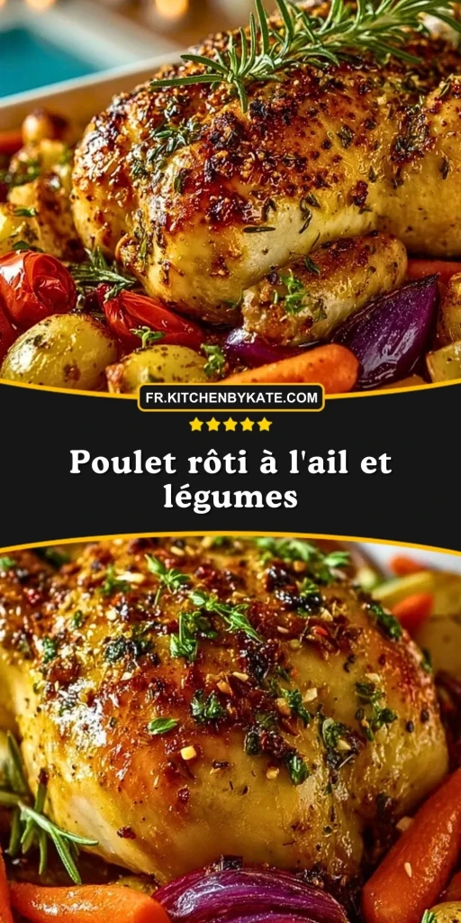 Enregistrez cette recette de poulet rôti à l’ail et légumes sur Pinterest pour la retrouver facilement à l’heure du repas.
