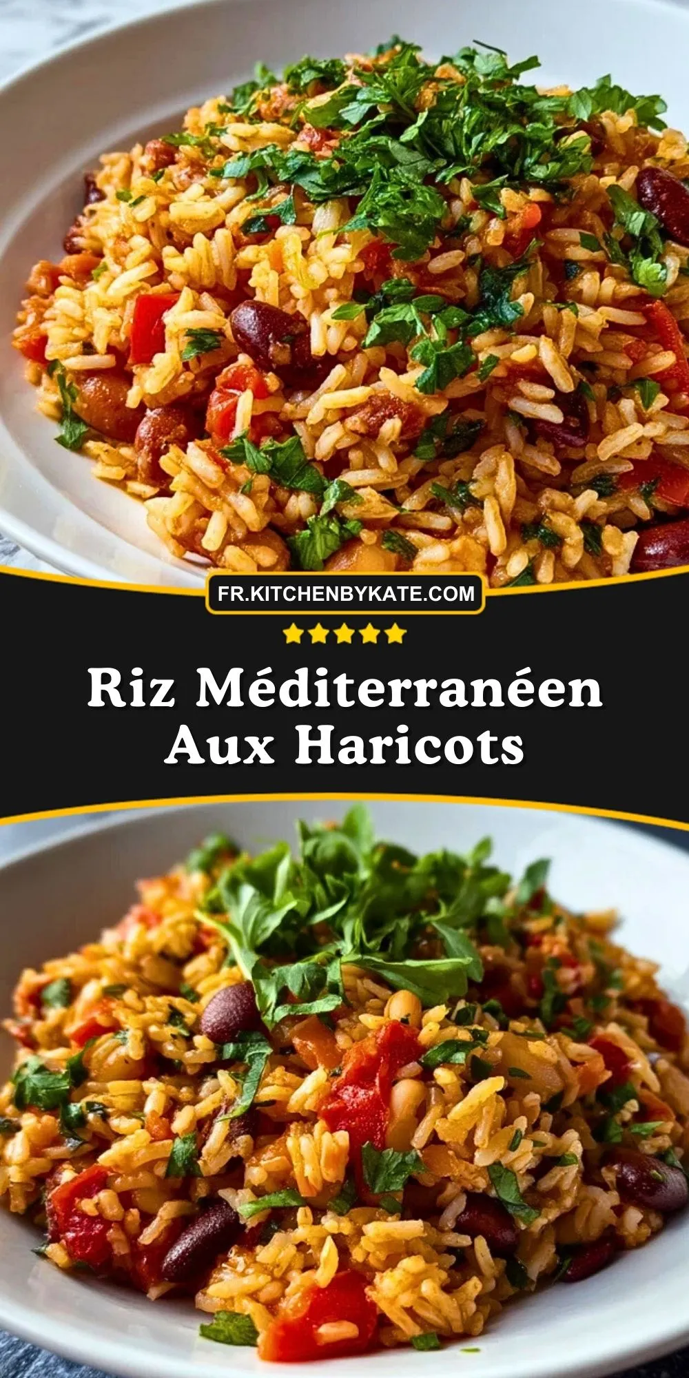 Ce riz méditerranéen aux haricots est un plat complet, coloré et généreux, qui apporte immédiatement une touche de soleil à la table. Entre le riz moelleux, les haricots fondants et les petits morceaux de légumes parfumés, chaque bouchée est riche en saveurs et en textures. C’est le genre de recette qu’on prépare aussi bien pour un soir de semaine sans prise de tête que pour un repas convivial entre amis.