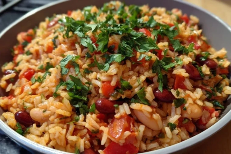 Ce riz méditerranéen aux haricots est un plat complet, coloré et généreux, à base de riz long grain, de haricots rouges et blancs, de tomates et d’herbes aromatiques. Cuit dans un bouillon parfumé puis relevé de citron et de persil frais, il est naturellement végétarien, facile à préparer et parfait pour un dîner rapide ou pour le batch cooking de la semaine.