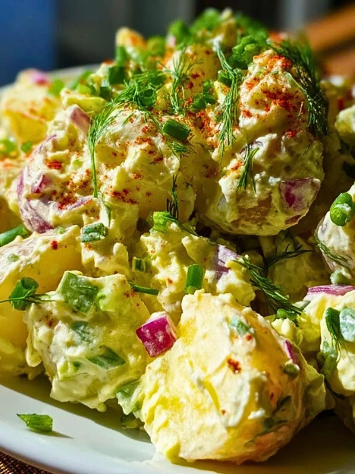 Une salade crémeuse à base de pommes de terre, œufs durs, cornichons et herbes fraîches, nappée d’une sauce onctueuse à la moutarde et à la mayonnaise. Parfaite pour les pique-niques, barbecues et repas d’été en famille ou entre amis.