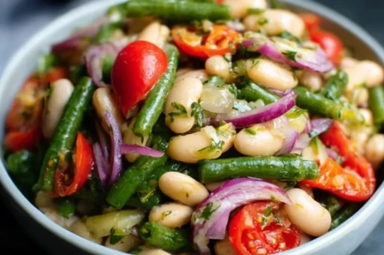 La salade de haricots denses est un plat coloré, nutritif et plein de fraîcheur. Composée d’un mélange généreux de haricots blancs et verts, d’oignons rouges, de tomates cerises et d’herbes fraîches, elle offre une belle diversité de textures. Cette salade complète est idéale en accompagnement lors d’un barbecue, en entrée estivale ou comme plat principal végétarien.