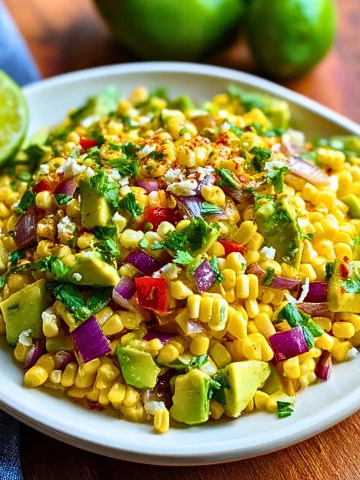 Une salade fraîche et colorée à base de maïs croquant, d’avocat fondant, de légumes et d’herbes fraîches, relevée par un assaisonnement au citron vert. Idéale pour accompagner un barbecue, un pique-nique ou un buffet estival.