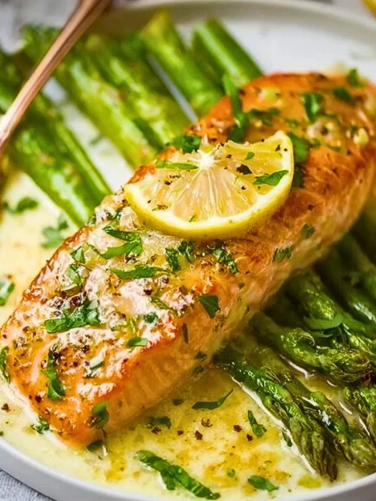 Découvrez une recette élégante et facile à préparer qui célèbre les saveurs fraîches de la mer et du potager : le saumon cuit au four dans du papier d’aluminium, accompagné d’asperges croquantes et nappé d’une sauce au beurre à l’ail et au citron. Cette préparation simple garantit un saumon moelleux, subtilement parfumé, tandis que les asperges absorbent la délicatesse de la sauce pour un résultat tout en fraîcheur.