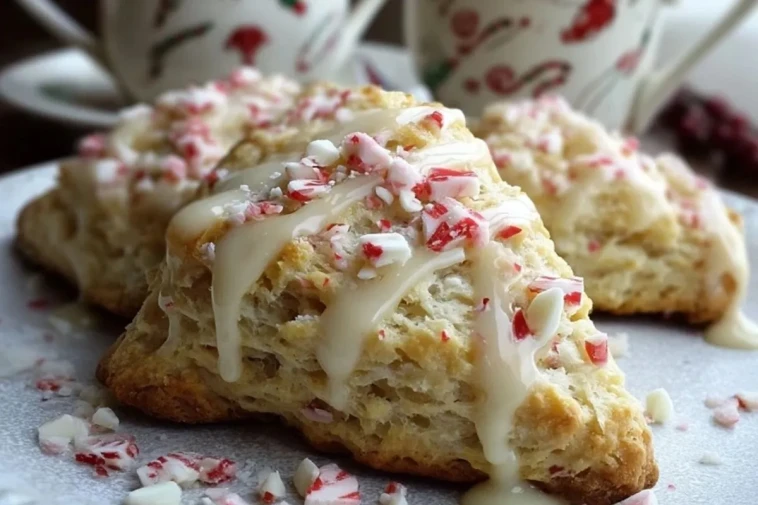 Des scones ultra moelleux, garnis de chocolat blanc fondant et parsemés d’éclats de bonbons à la menthe poivrée. Un glaçage délicat et des morceaux croquants de cannes de Noël rendent cette recette parfaite pour un brunch festif ou un goûter d’hiver.