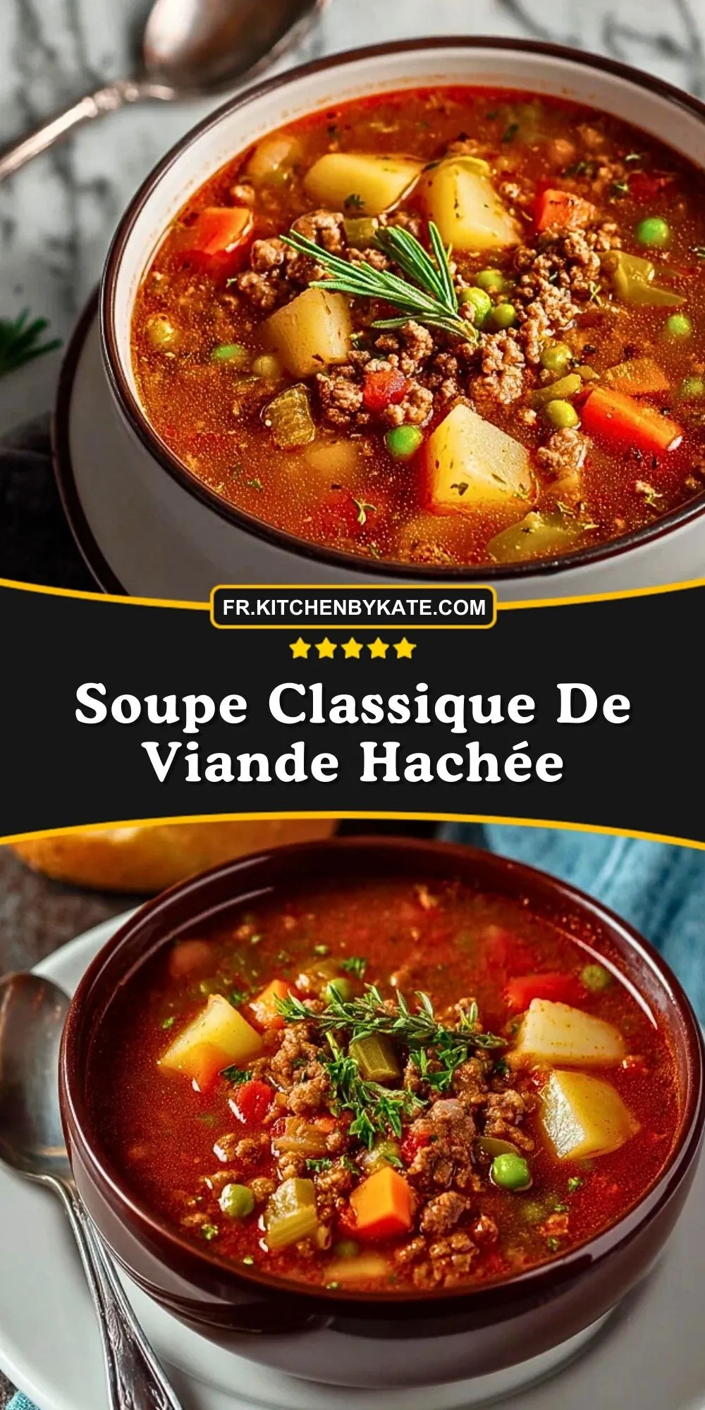 Épinglez cette soupe classique de viande hachée sur votre tableau Pinterest « Soupes » ou « Repas réconfortants » pour la retrouver facilement lors de vos futures soirées d’hiver.