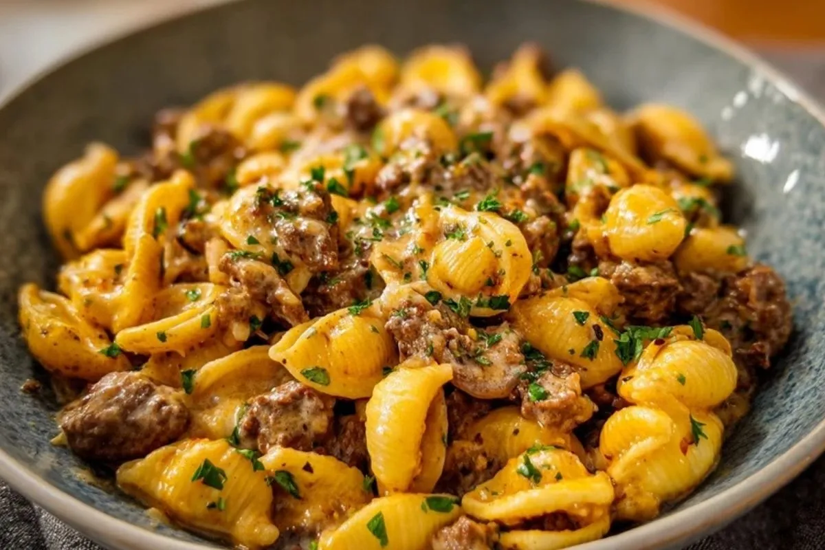 Cette pasta cajun crémeuse aux saucisses est un plat de pâtes « one pot » ultra réconfortant, où les torsades cuisent directement dans un bouillon épicé avant d’être enrobées d’une sauce onctueuse à la crème et au parmesan, avec de généreuses rondelles de saucisse fumée et des poivrons fondants.