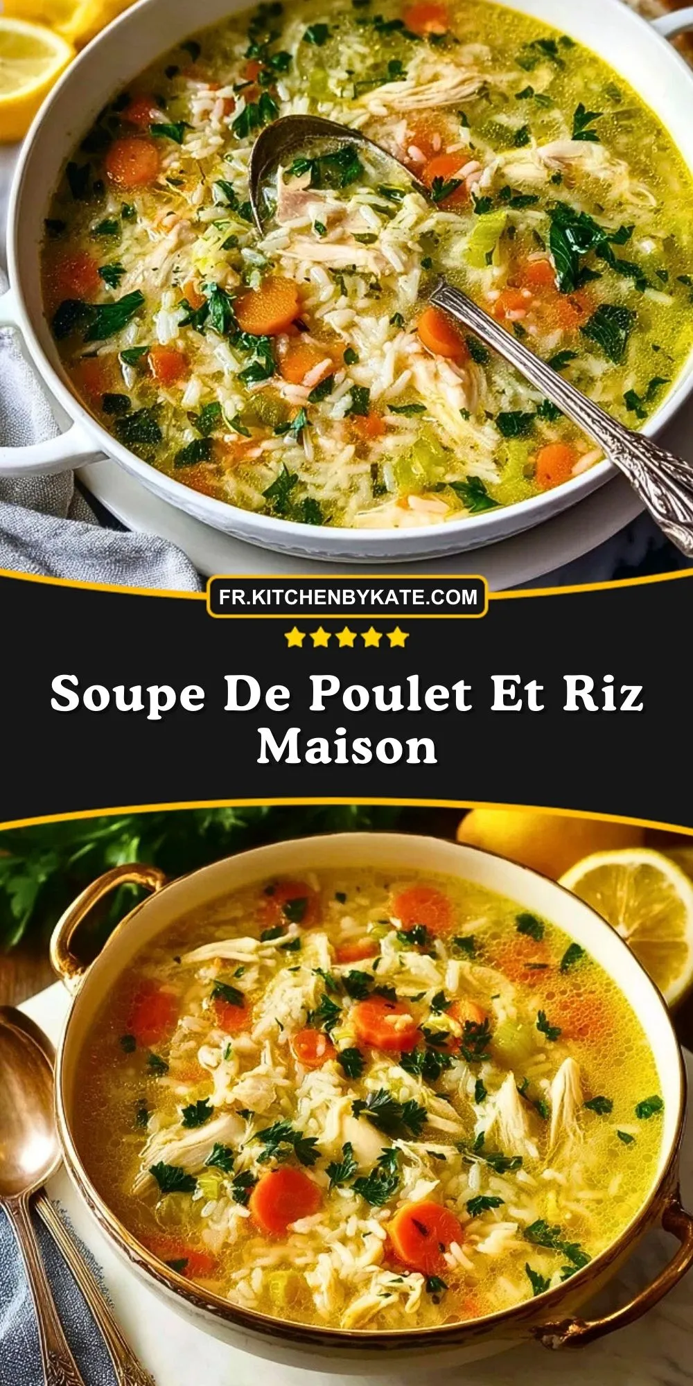 Épinglez cette soupe de poulet et riz maison sur votre tableau Pinterest de recettes réconfortantes pour la retrouver facilement lorsque vous aurez envie d’un repas simple, chaud et familial.