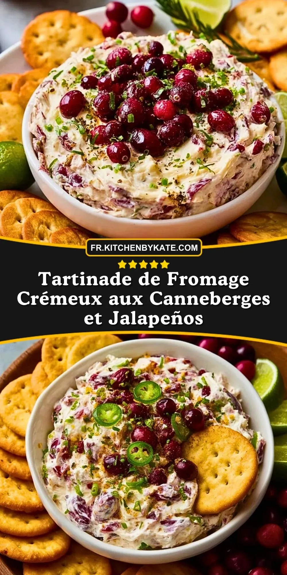 Keywords: tartinade, fromage frais, canneberges, jalapeño, apéritif festif