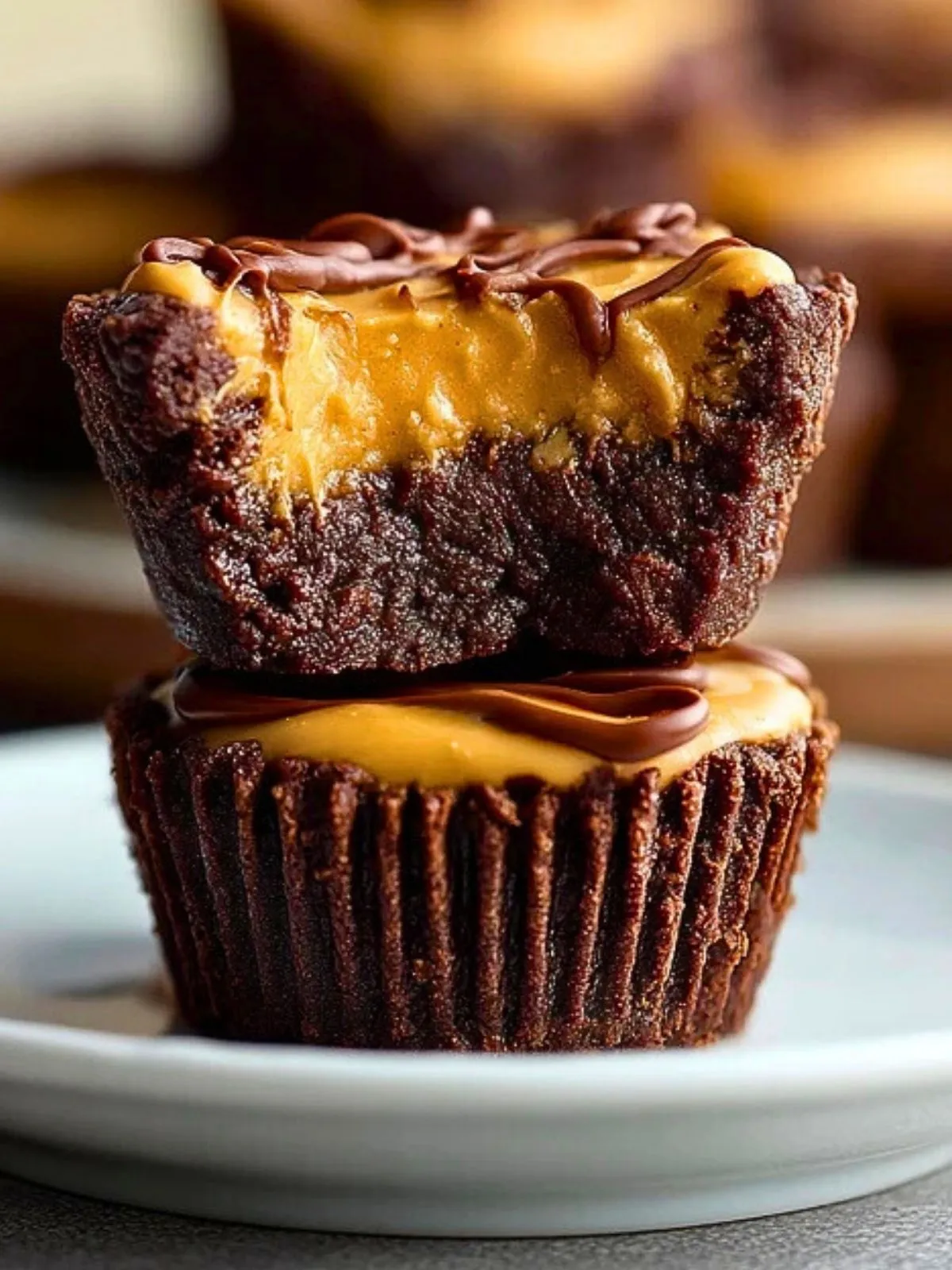 Avec leur base dense et chocolatée et leur garniture onctueuse, ces petites douceurs sont parfaites pour un dessert festif, un goûter gourmand ou une pause sucrée réconfortante. Chaque bouchée offre un contraste délicieux entre le brownie moelleux et la couche fondante au beurre de cacahuète.